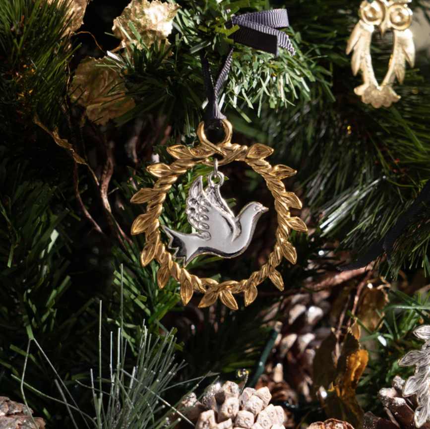 Crafted in a mix of gilded and silver-plated pewter, the 2024 Peace Dove is elegant and symbolic, representing the essence of holiday peace and joy. The white dove rests within an ornate golden wreath, inspired by the olive branch, with the year engraved to make this another must-have piece in any collector’s set.